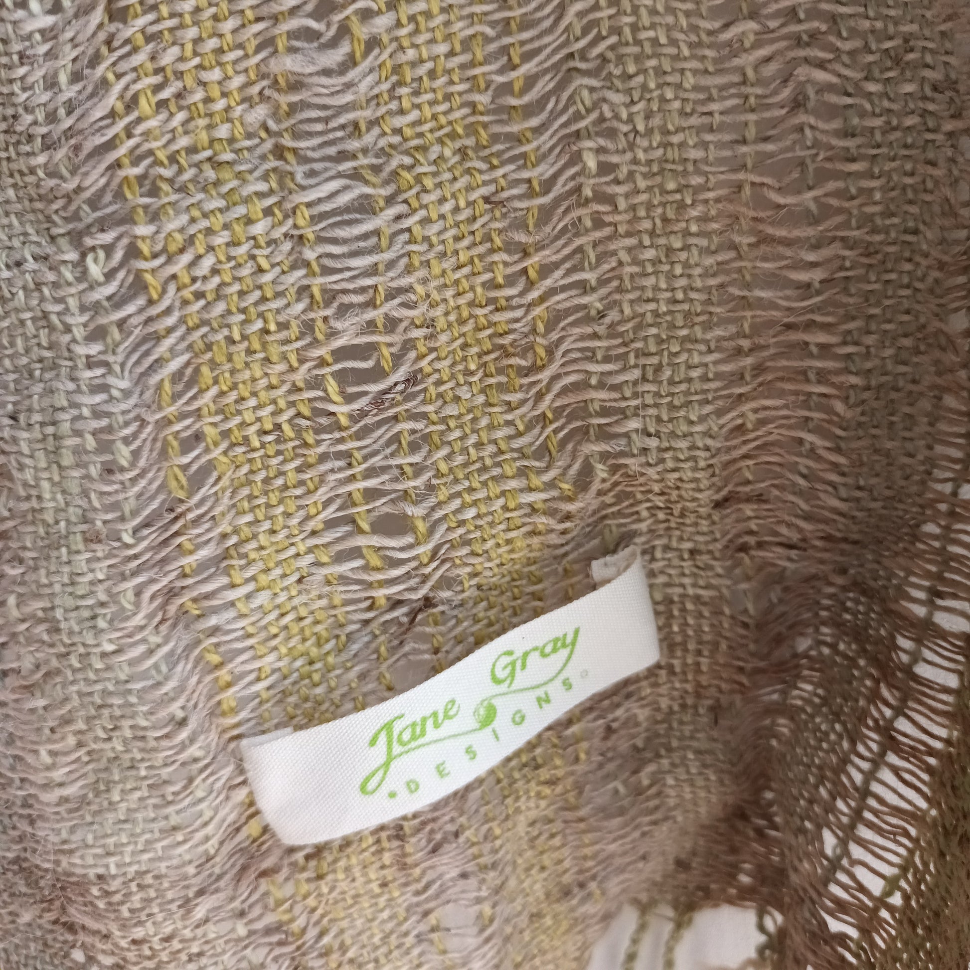 The pattern of the shawl/scarf has a stretchy crinkled effect woven into the cloth which adds texture and a natural rustic interest by design.